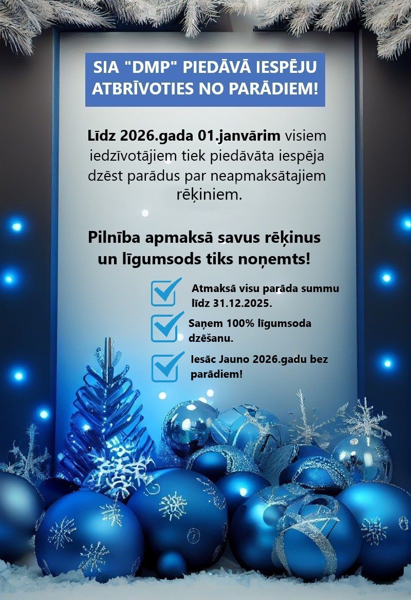 Līdz 2026. gada 01. janvārim visiem iedzīvotājiem tiek piedāvāta iespēja dzēst parādus par neapmaksātajiem rēķiniem. Pilnība apmaksā savus rēķinus un līgumsods tiks noņemts!