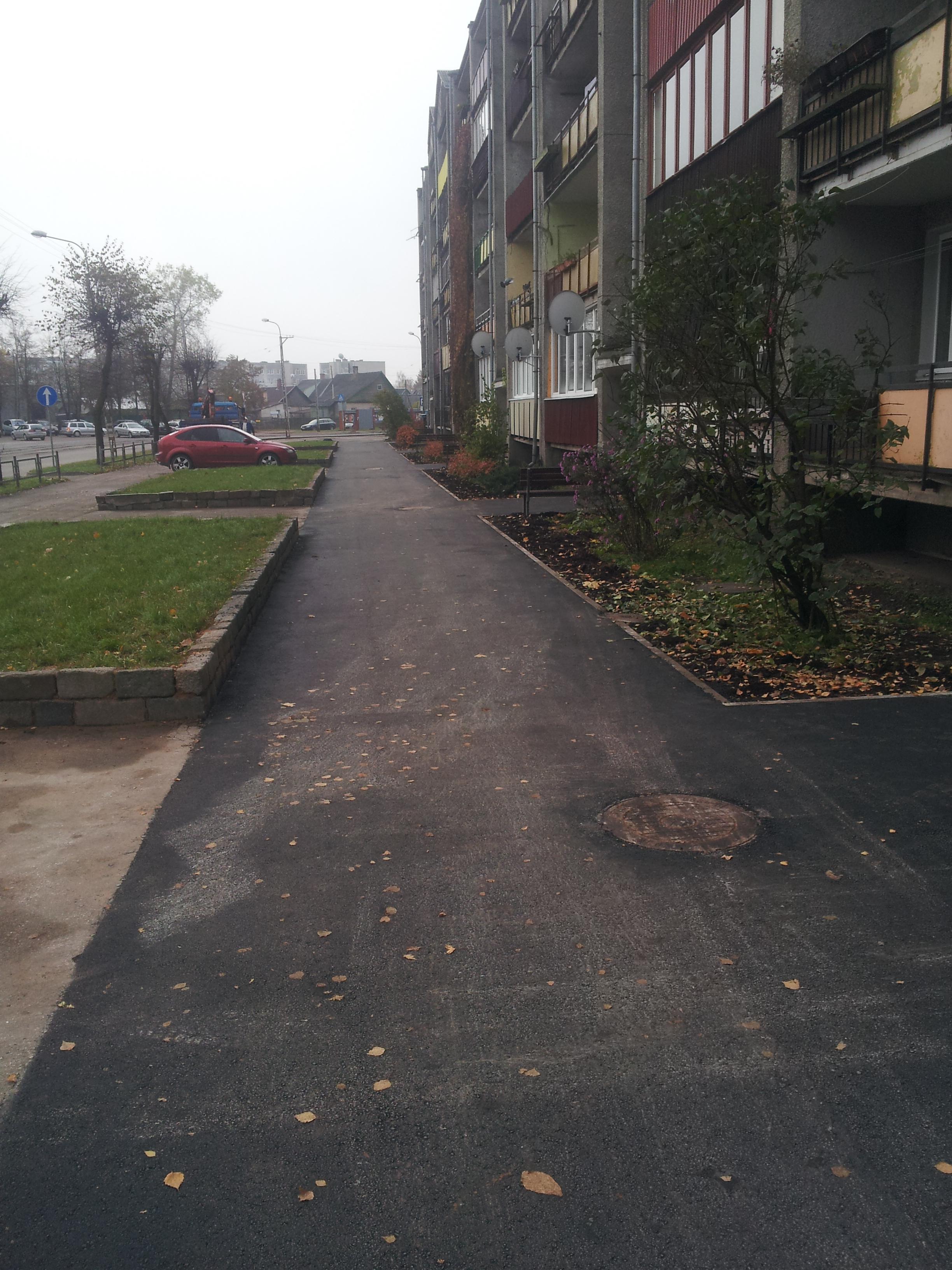 Работы: асфальтирование тротуаров, озеленение (возле подъездов),